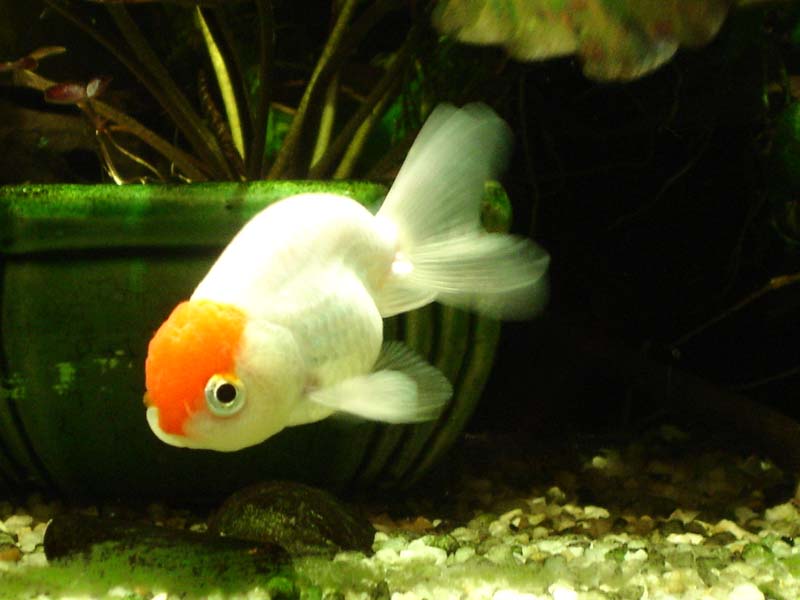 Titre: Oranda à capuchon rouge